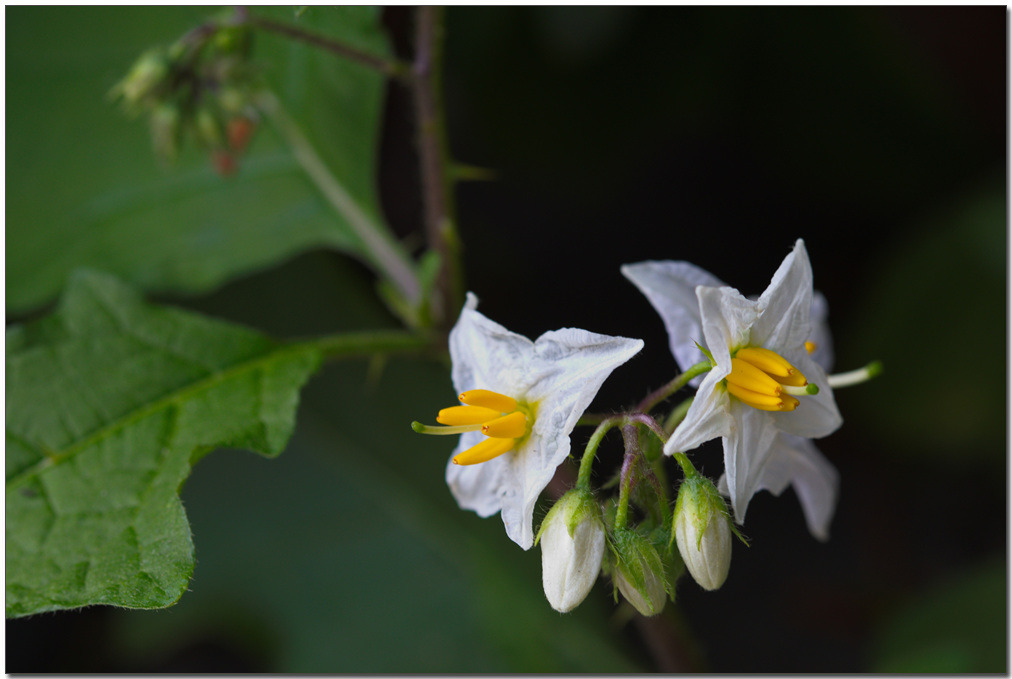꽃은 6-10월에 피며, 줄기 옆에서 나온 총상꽃차례에 3-10개가 달린다. 화관은 5갈래로 갈라지며, 흰색 또는 연한 보라색이다. 열매는 장과, 둥글며, 주황색으로 익는다.