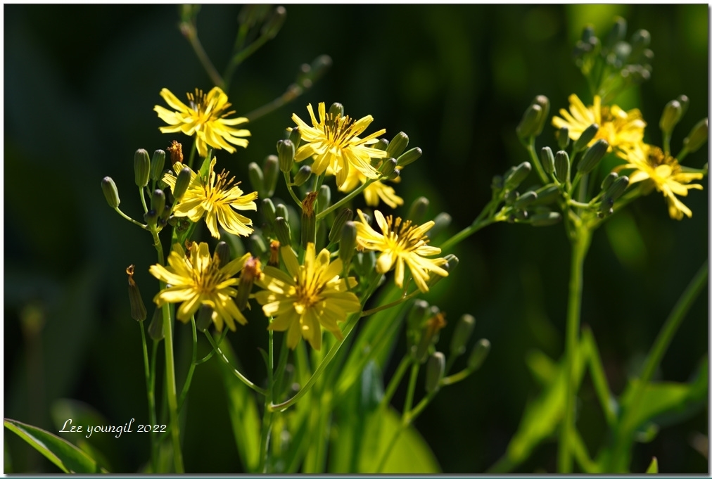 보도블록 틈에 핀 씀바귀꽃