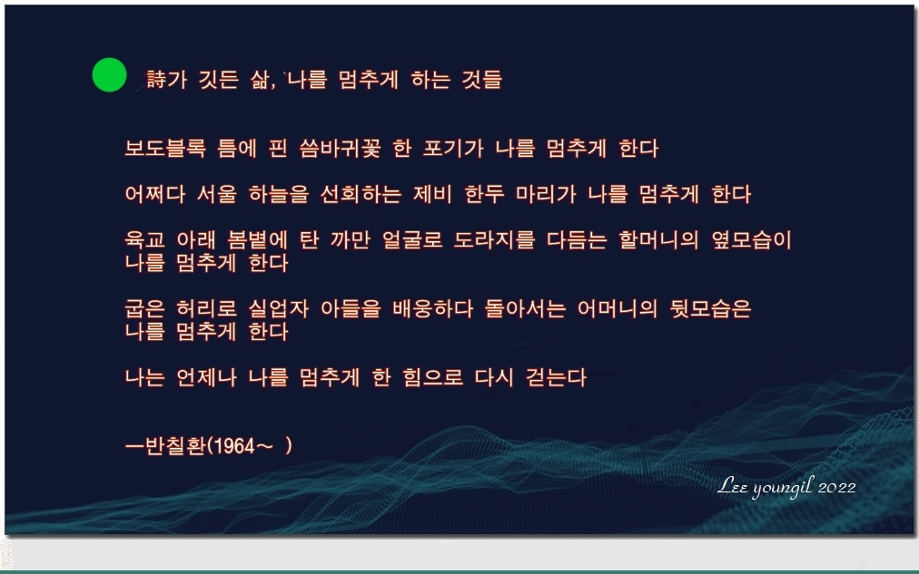 ❁ 詩가 깃든 삶, 나를 멈추게 하는 것들