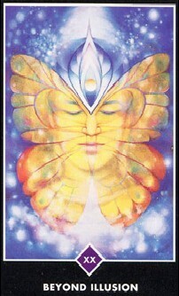 오쇼젠 20번 타로카드 환영을 넘어서(Beyond Illusion)는 유니버셜 웨이트 타로카드 21번 심판에 상응한다. 이 오쇼젠 타로카드의 키워드는 현실감 있도록 살아가다, 꿈에서 깨어나는, 자각몽(自覺夢), 의식의 각성, 나비의 변신(환골탈태), 잘 생긴(멋진), 미남, 세련된, 외모를 중시하는 등을 지닌다.