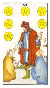 - 총 6개의 펜타클에서 4개의 펜타클이 노랑색 옷을 입은 사람에게