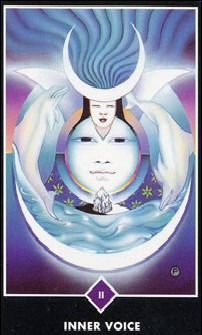 오쇼 젠 타로의 2번 Inner Voice는 외부 세계의 소음이 가라앉은 뒤에야 들리는 본래적 의식의 진동을 상징한다. 이는 유니버셜 웨이트 타로의 **High Priestess(여교황)**에 대응하며, 지식 이전의 지혜, 말 이전의 앎을 가리킨다.