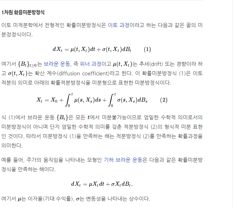 금융공학에서 쓰이는 확률미분방정식(stochastic differential equations)이라는 것이 있다.