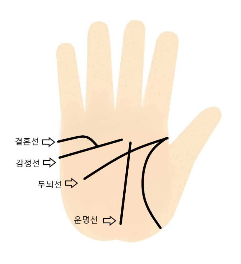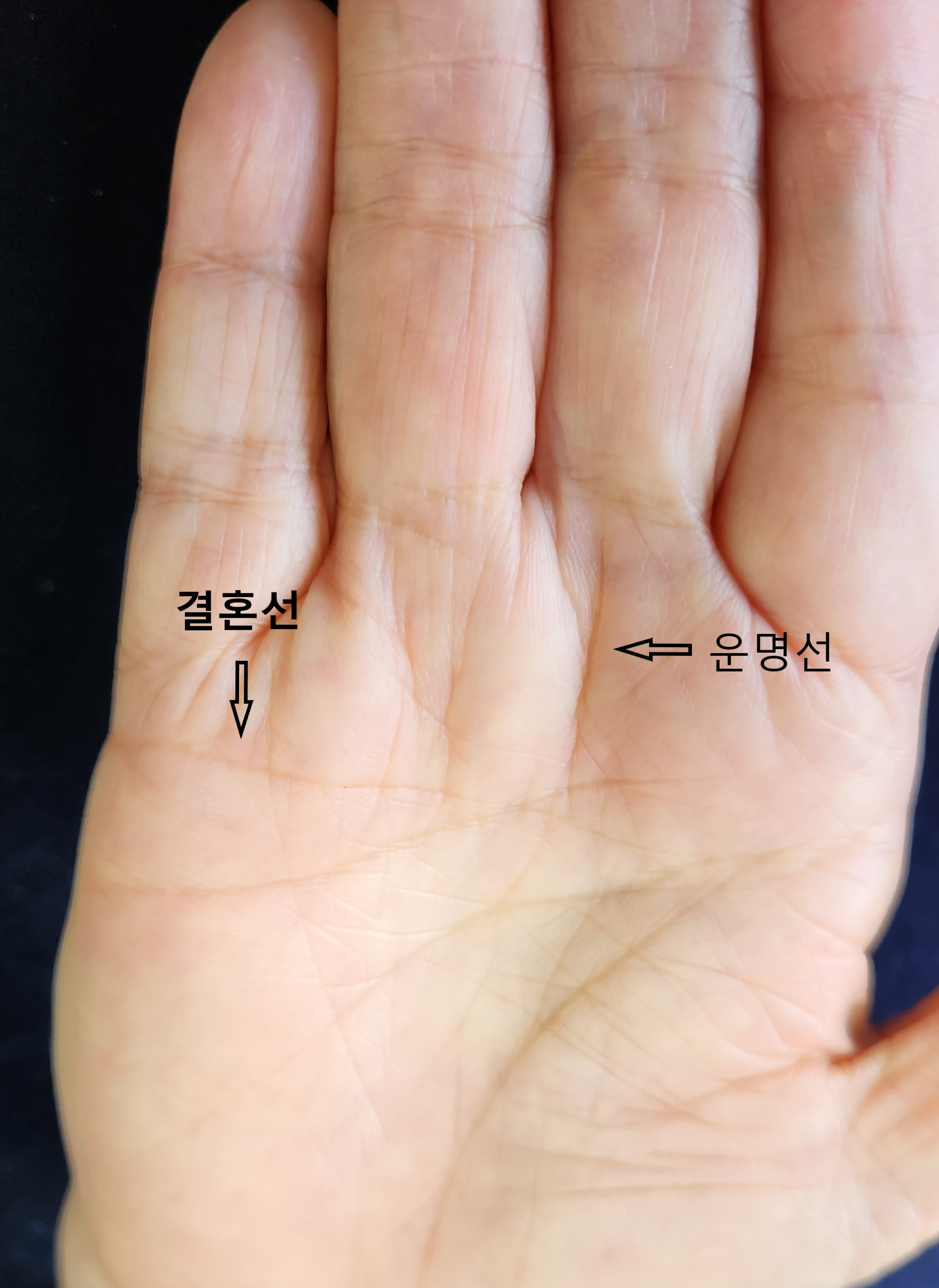이 손금은 이별/사별선이라고 불리기도 하며 배우자와의 사별로 일찍 혼자가 된 사람에도 나타난다. 결혼선이 길게 하향하여 감정선에 닿게 되며 배우자가 오랜 기간 병고로 고생하는 것으로 보기도 한다.
