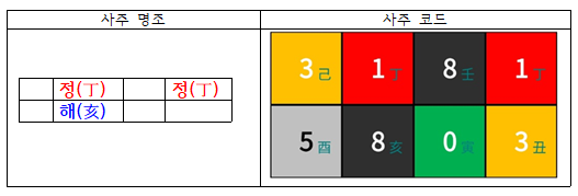 이 공식은 저의 책 사주 코드로 풀자 107쪽 6번 공식에 속한다.