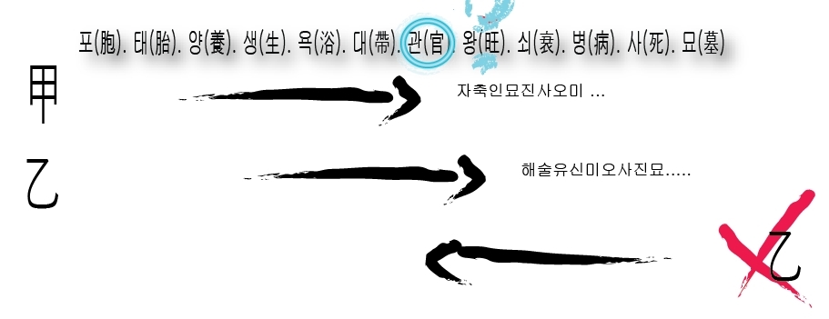 하지만, 포태양생욕...의 순서가 뒤집어 지는 것은 아니다. 무슨 음간은 죽기부터 한다는 말인가? 양간이든 음간이든 운행의 순서는