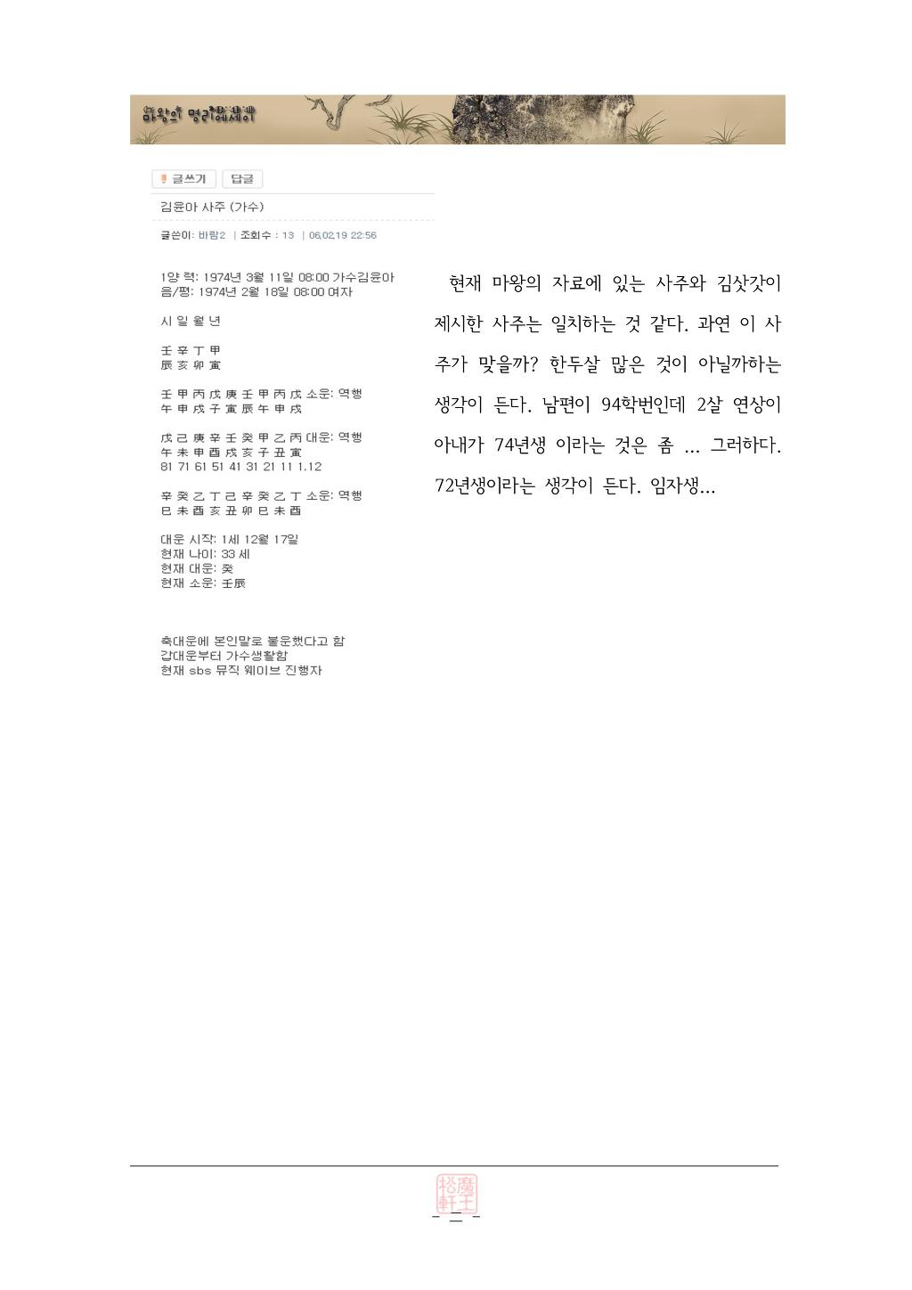 작성자meirin 작성시간 09.08.27 김윤아 74년생 맞습니다...저희 고등학교 선배거든요,.. 기수는 확실합니당....
