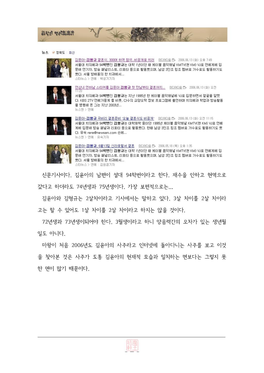 작성자쌈닭 작성시간 09.08.28 94학번이면 정상적으로 75년 생이고, 김형규는 76년 1월 생입니다. 여자가 나이가 많을때 좀더 과장해서 적고 싶은 법이지요*^^* 햇수로는 2살차 맞는 거죠.