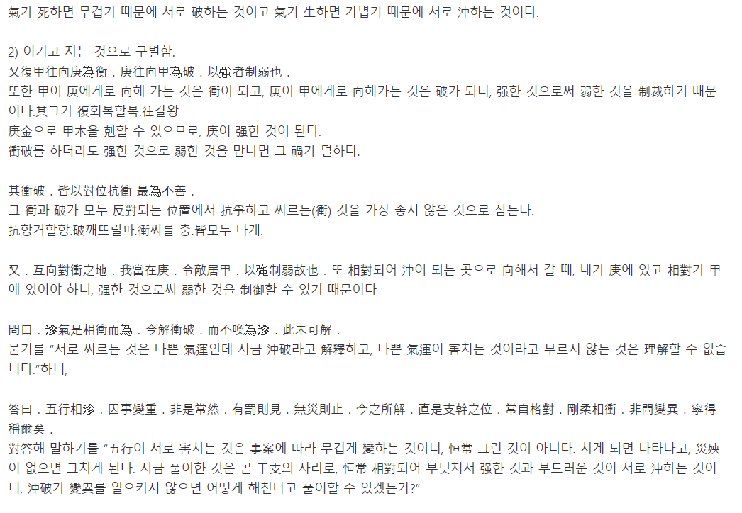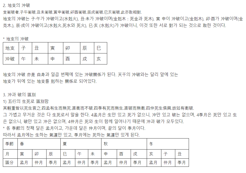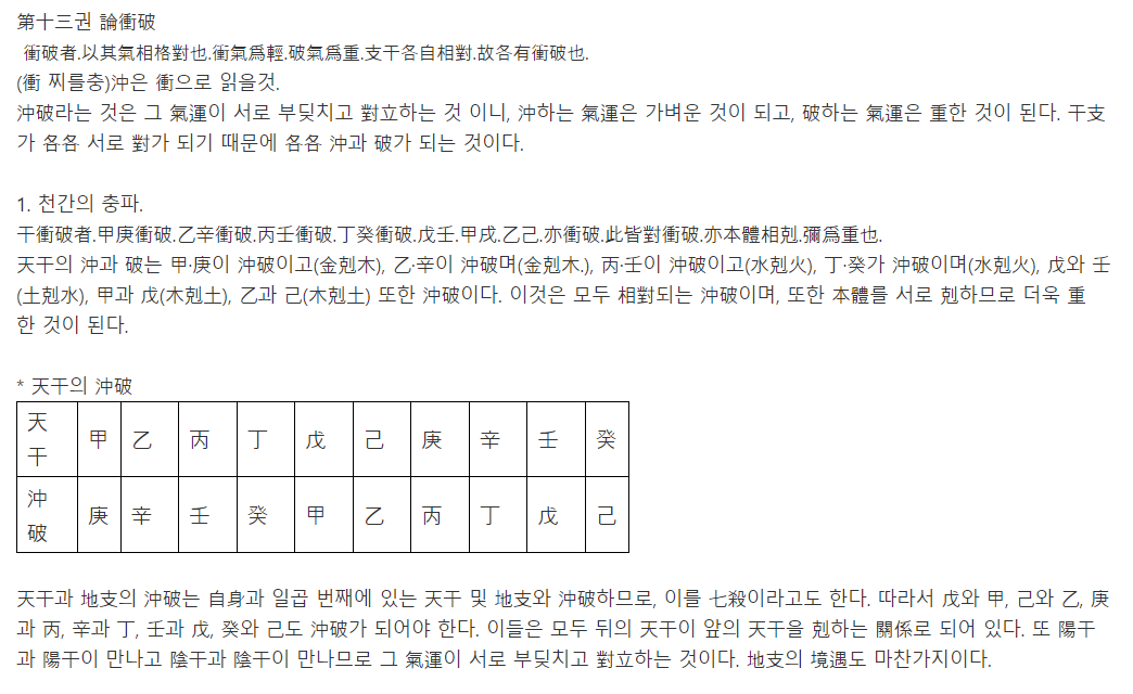 沖과 衝 의 차이점을 깨달았습니다 어디에는 沖이라 하고 어디에는 衝이라하는 까닭을 깨달았어요 뭐 틀릴 수도 있겟지만 보통 삼명통회에 빌 충(沖)은 외격부분에서 많이 등장하더군요. 거기서 등장하는 沖은 빌 충(沖)입니다 그러나 육임이환같은 천간충은 충(衝)이에요 즉 빌 충(沖)은 충기이론에 많이 나옵니다. 충출(沖出)할때에도 충(沖)이고요 즉 그러니까 충(衝)하여 비허서 충출(沖出)한다는 의미를 보여줄 적에는 비어있다 공허하다 의 빌 충(沖)이고 천간충처럼 수순한 충에는 찌르다 부딪치다의 충(衝)으로 사용한 것이 아닌가 생각합니다 -