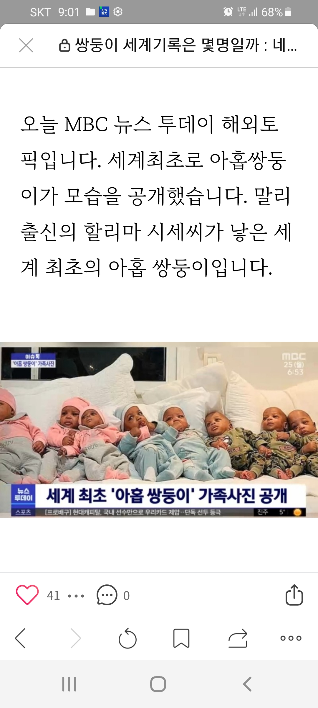 일단 남아공에서 태어난 열 쌍둥이의 건강 상태나 현재 모습 등은 아직 공개되지 않았다. 출산 사실이 공식적으로 인정되고 열 쌍둥이가 모두 살아남으면 자연 임신으로 태어난 세계 최다 쌍둥이 기록은 또 한 번 갈리게 된다.