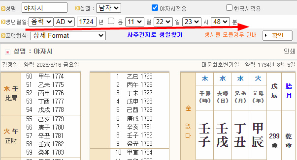 11월 22일 야자시를 뽑아보면 다음 아래와 같습니다. 일진이 임술이 나오죠