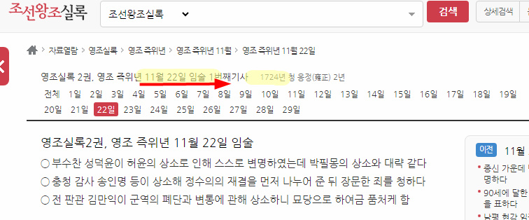 1724년 11월22일은 임술일이 됩니다 (조선왕조는 음력 사용함)