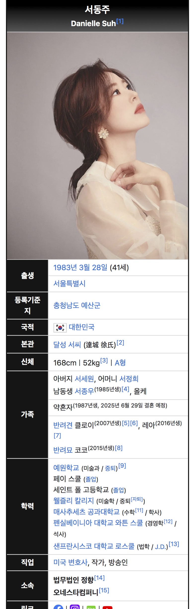 이혼 이후에 나무위키 페이지도 밀어버린 걸로 보이네요.