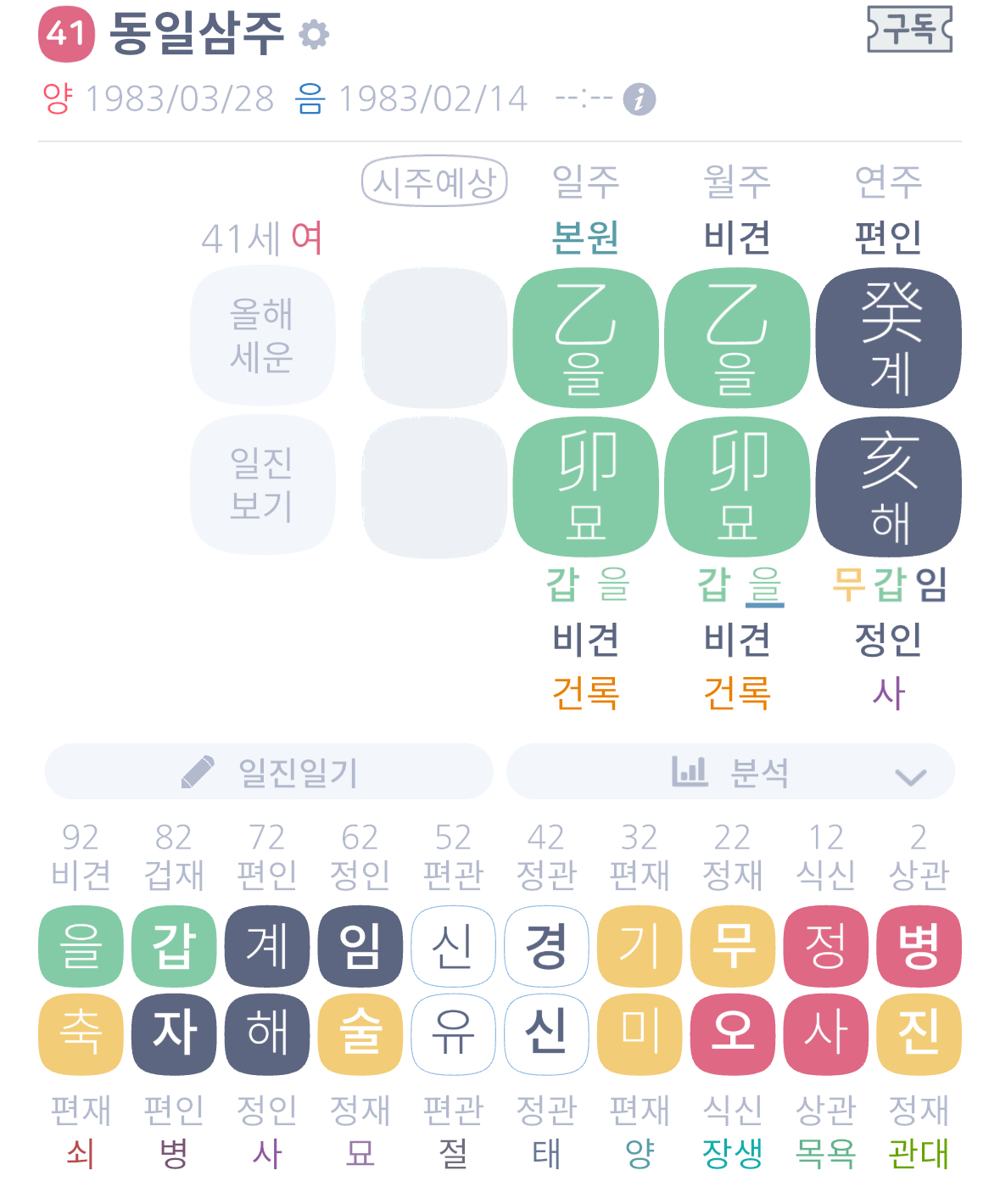 곡직격이라면 이제 남은 경신 신유 대운은 아주 힘들 것으로 보입니다.. 임술까지 넘어가야 나아지겠어요.