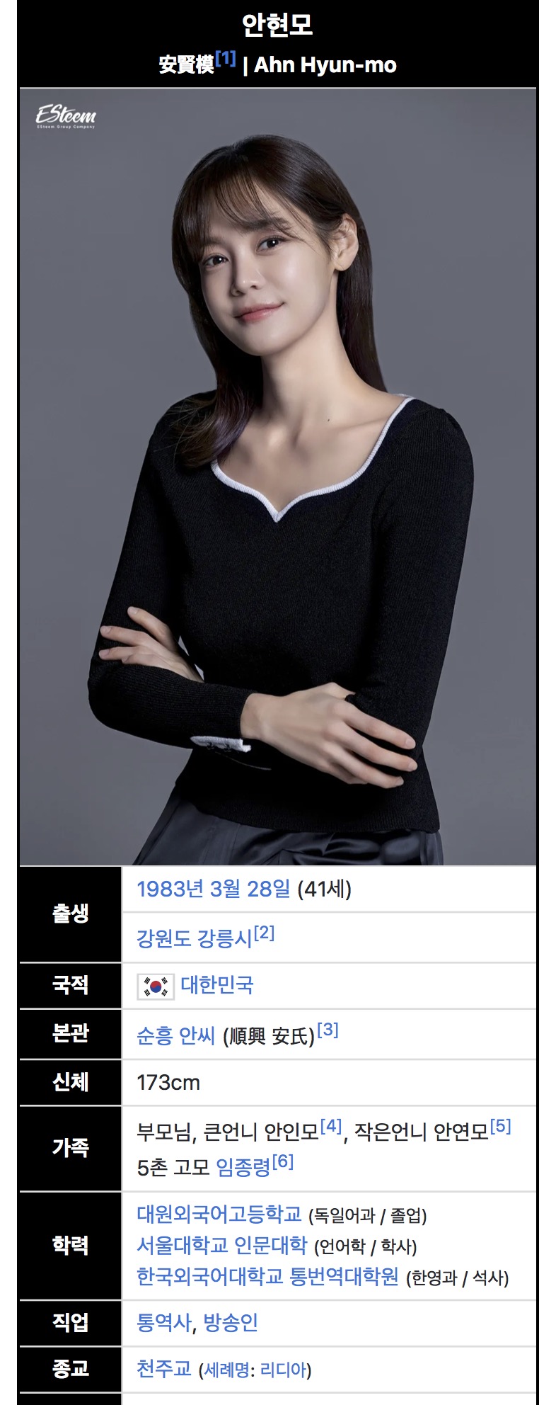 가정사도 대중에 다 공개하고 나무위키 페이지도 세세하게 살아있는 걸 보면 안현모씨와 성향은 많이 다른 걸로 보입니다. 아마 남들이 뭐라하든 상관안해. 내가 유명한 걸 이용해서 돈을 벌 수 있으면 벌겠어. 이런 마인드인 걸로 생각이 됩니다. 어쩌면 미국에서 살아왔기 때문에 가지고 있는 미국인스러운 태도일 지도.