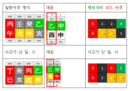 오른쪽(右측)은 양(陽)에 해당하는데 사고 당시 투간된 丙(火), 丁(火) 모두 양의 불(火)에 해당함