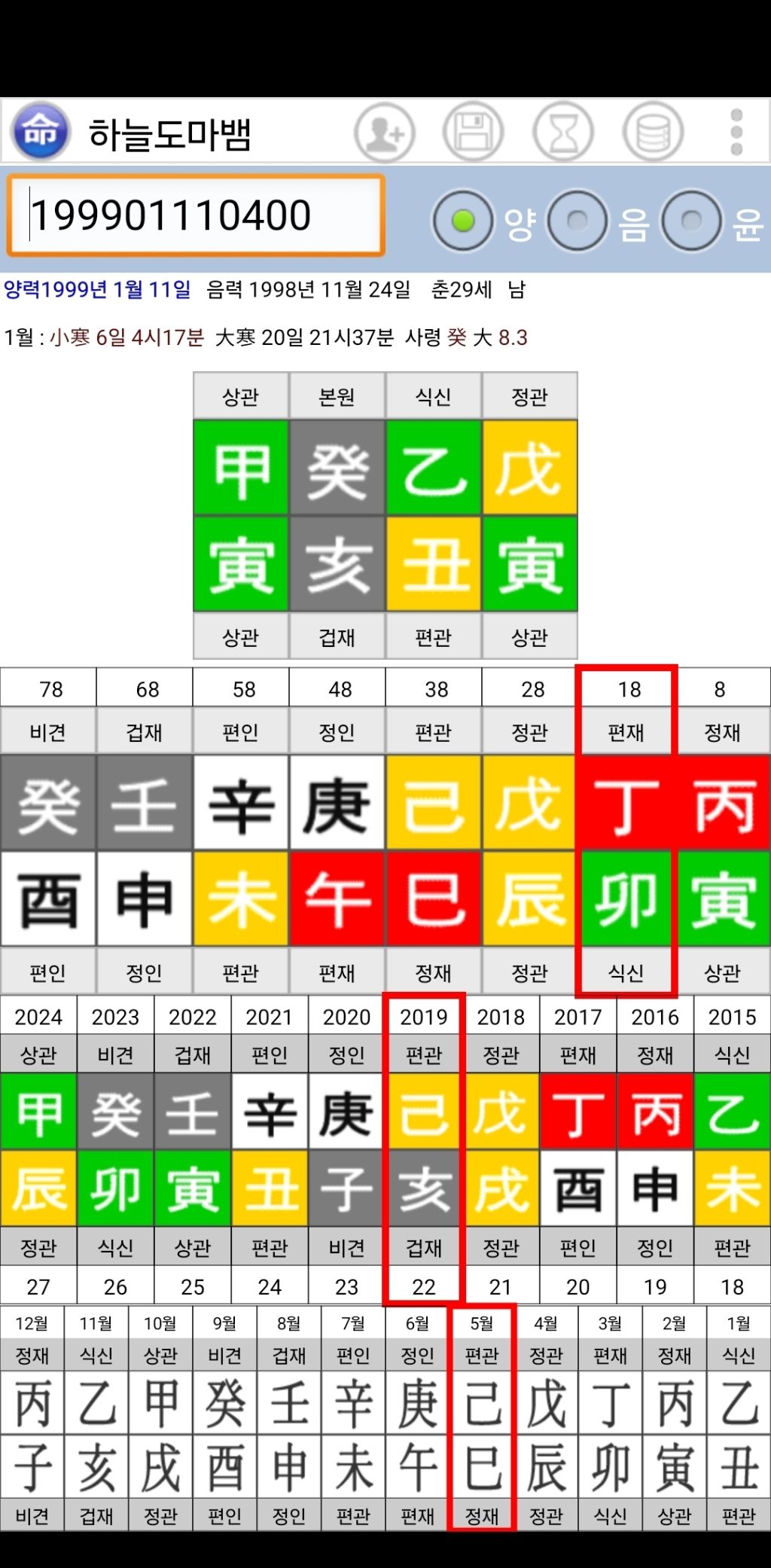 정묘대운 기해년 기해월 사망 20대 초반 군대시절 한창 혈기왕성