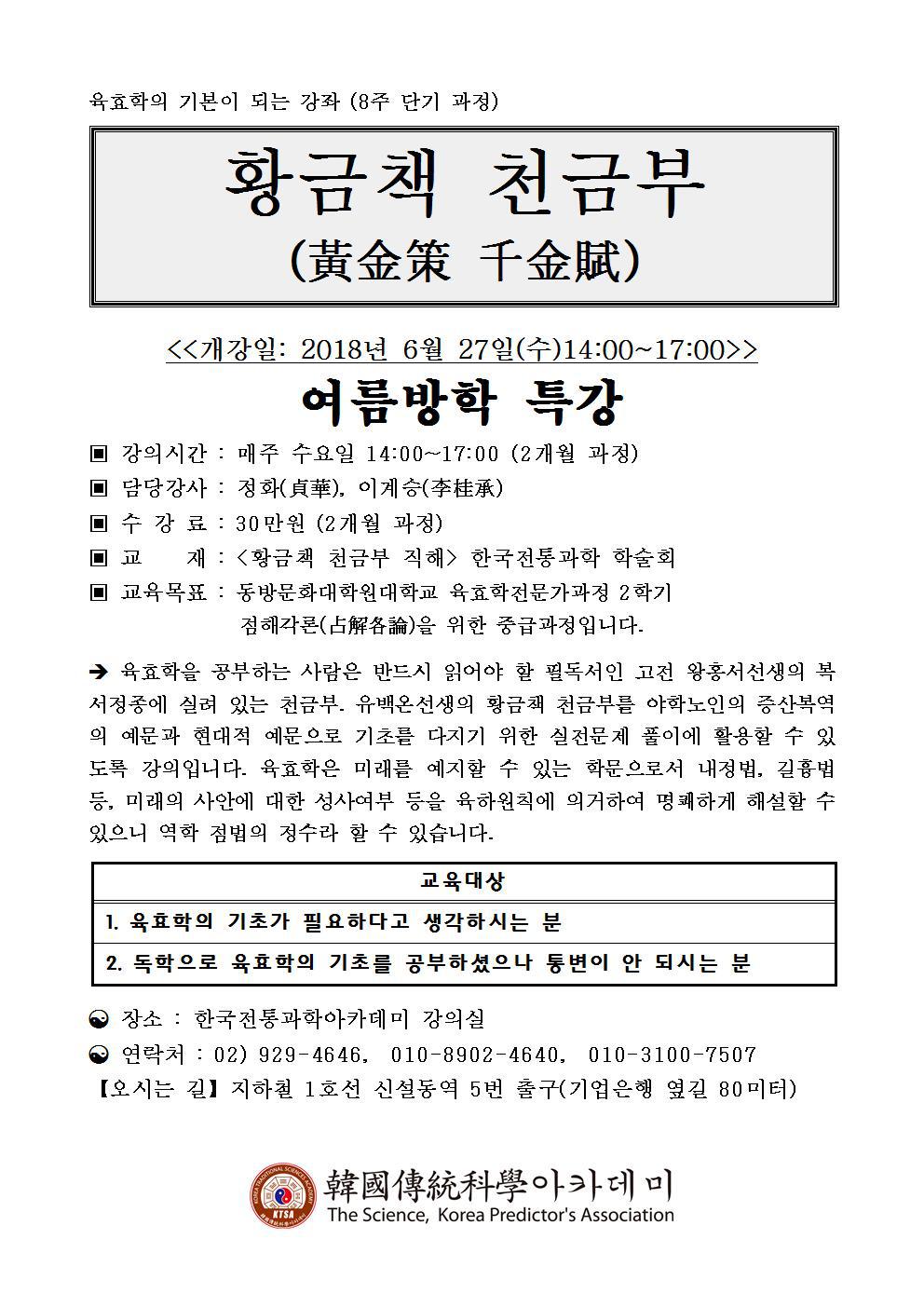 여름방학 특강 - 황금책 천금부(黃金策 千金賦)| 작성자ktsa|작성시간18.06.18|조회수536 목록 댓글 0 글자크기 작게가 글자크기 크게가 다음검색 현재 게시글 추가 기능 열기 북마크 공유하기 신고 센터로 신고 댓글 댓글 0 댓글쓰기 답글쓰기 댓글 리스트
