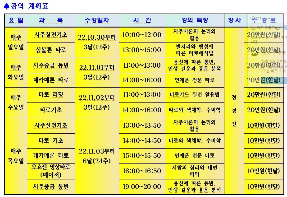 타로와 사주 수업을 새로 개강하게 되어 공지합니다.