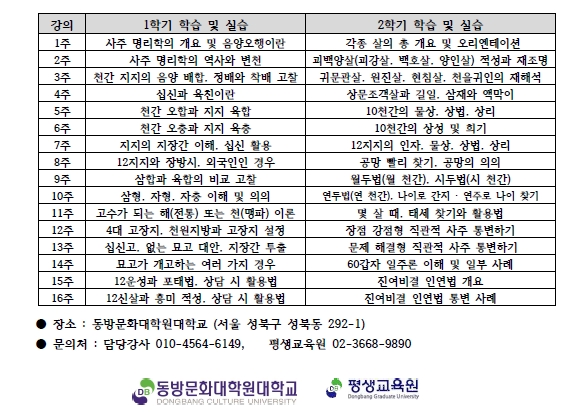 에 유효 적절하게 대응할 수 있도록 합니다. 1학기에는 전통 사주명리학과 맹파 명리학 이론 중