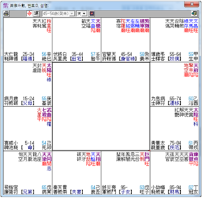 신주(身主)는 천동으로 무인궁에 있고 화기(化忌)와 동궁하고 있고 순공과 동궁하고 댓궁에 음살과 록존(祿存)이 있다. 명궁은 기묘궁의 무곡, 칠살이고 천이궁을 살펴보면 을유궁으로 천기의 화록으로 태양의 화록과 일보행으로 인신궁을 인동한다.