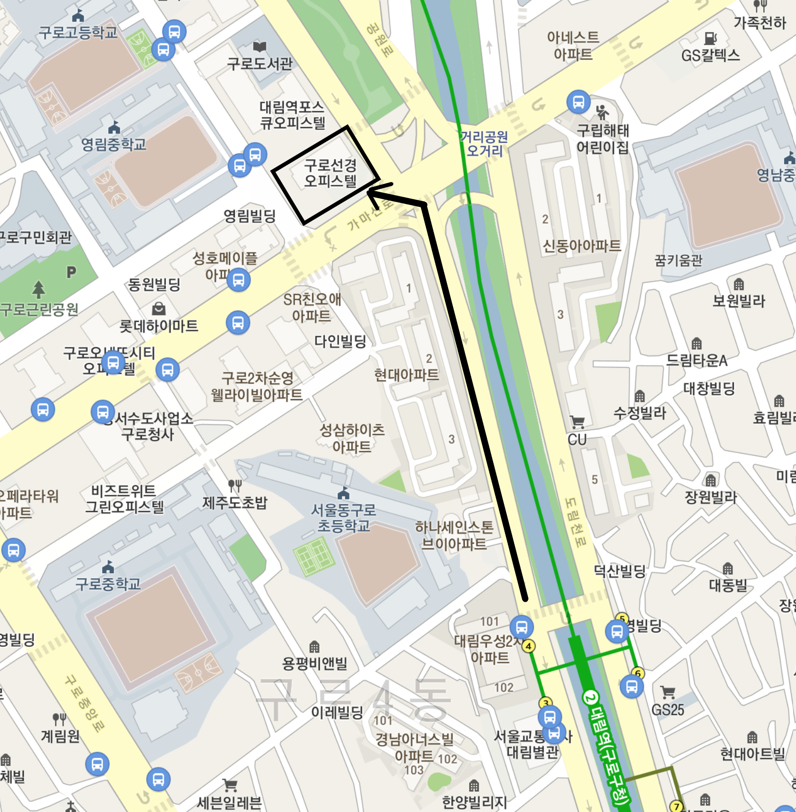 ♣ 빌딩 내 주차가 혼잡합니다. 강의실 인근에 위치한 대림운동장 공영주차장, 구로아트밸리 공영주차장이 비용과 편리성에서 장점이 있습니다.