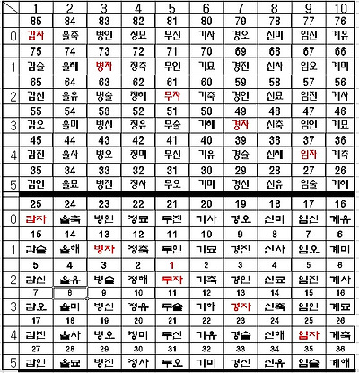 | 천간 무는 양간이고 1째줄에서 시작하는 것은 진, 결국 무진이고 | ||||||||||||||