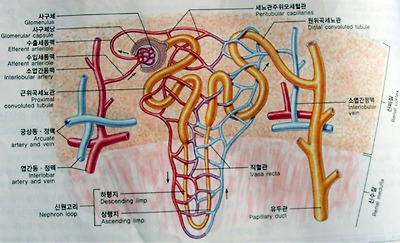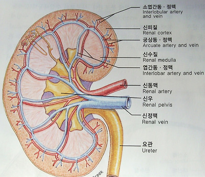 심장에서 보내진 혈액에 함유되어 있는 여분의 물과 노폐물은 이곳에서 걸러져 소변이 된다.