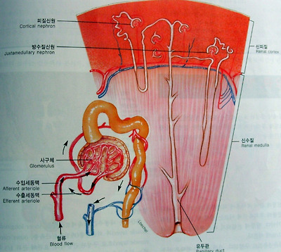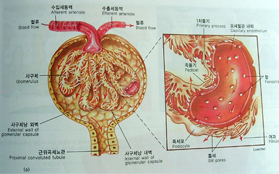 [사구체:신장의 피질부위에 있는 공 모양의 작은 모세 혈관 덩어리]
