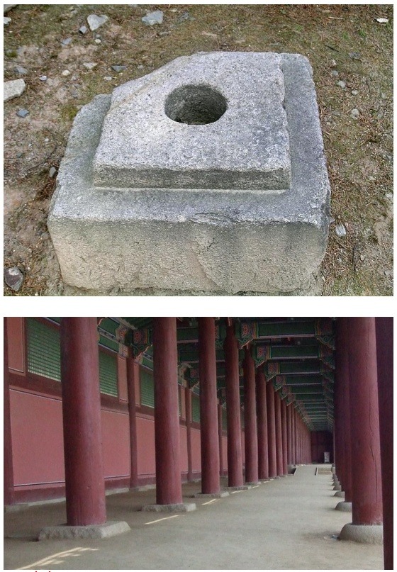 -일반적으로 원주에는 원형초석을 방주에는 방형 초석을 사용하지만