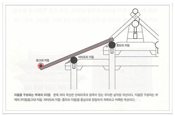 ㅇ평고대 지점이 모여 처마곡선인 안허리곡과 앙곡을 실현한다