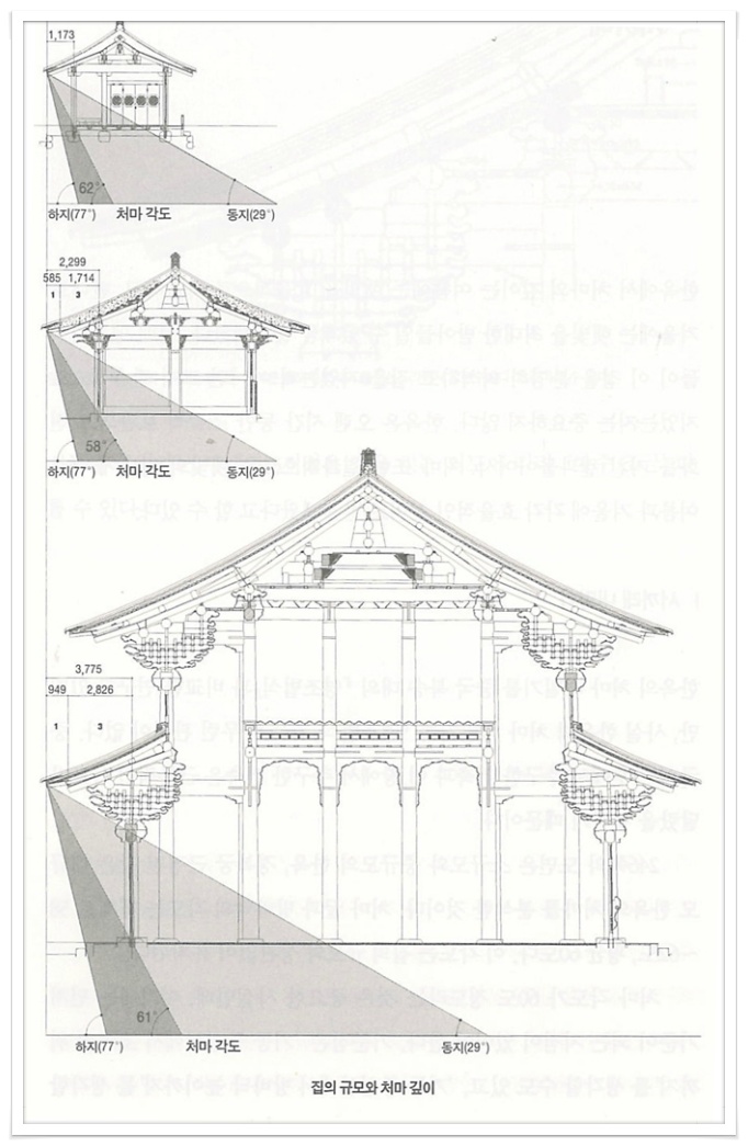 ㅇ처마끝과 방바닥의 각도는 대체로 58~62도 이다