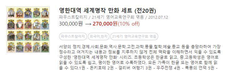 3. 영한대역 세계 명작 칼라 만화 : 총 20권(각권 정가 15,000원)