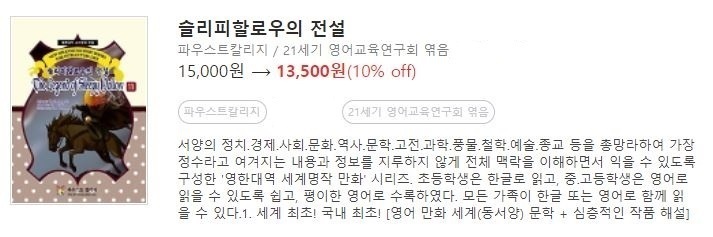 3. 영한대역 세계 명작 칼라 만화 : 총 20권(각권 정가 15,000원)