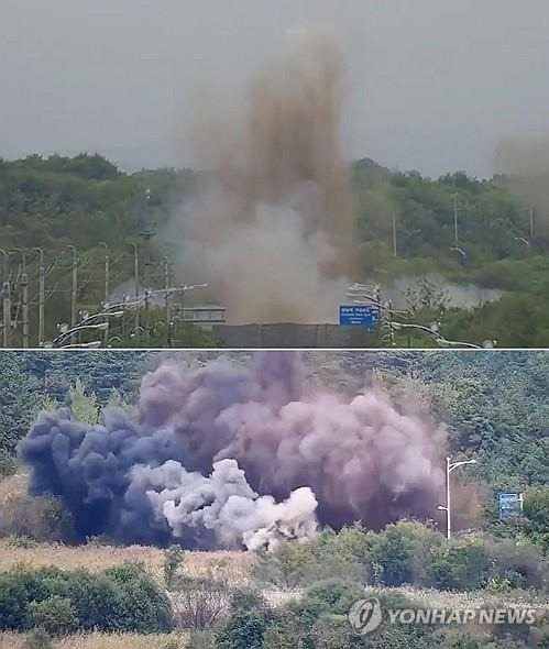 합동참모본부는 "북한이 오늘 정오쯤 경의선과 동해선 군사분계선 이북 구간 일부를 폭파했다"고 밝혔습니다.