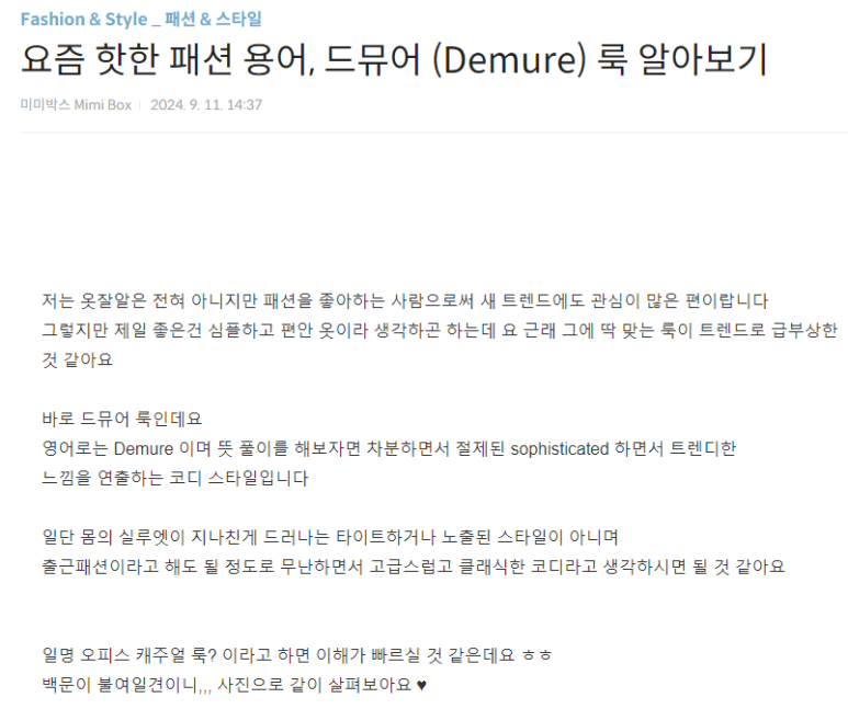 처음엔 여성에게 부여된 사회적 고정관념을 풍자하기 위해 사용됐지만, 눈에 띄지 않고 튀지 않게 행동하고 퇴근길 조용히 사라지는 게 요즘 Z세대의 생활백서라는 해석도 있다. 국내에선 Z세대 중심으로 올가을을 사로잡을 대표적인 라이프 스타일 트렌드 용어로 부상하고 있다.