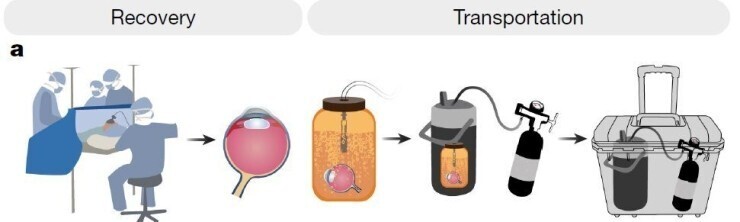 연구진은 망막세포들이 사후에 신호를 주고받지 못하는 것은 산소 부족 때문임을 알아냈다. 이번에는 사망한 사람에서 눈을 적출한 다음 산소와 영양분을 제공하는 특수 용기에 넣었다. 이후 망막에 전기자극을 주고 빛을 비추자 황반의 광수용체에서 생전과 같은 전기신호가 나타났다. 황반은 망막에서 시신경세포가 밀집된 곳으로 이곳에서 뇌로 시각정보가 전달된다.