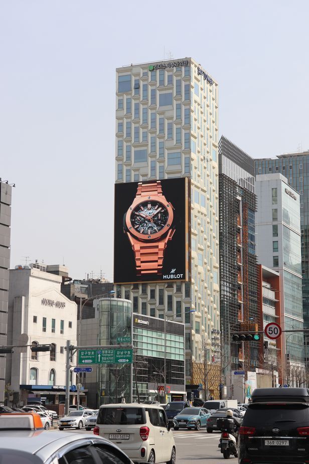 세로 8m 제한이 풀리자 가로형 일색이던 전광판 틀이 바뀌었다. 첫 파격 전광판은, 3년 전 도산대로 학동사거리 S&S(에스앤에스) 타워에 등장한 세로 전광판(가로 13m, 세로 17.2m). 한 광고 대행사 관계자는 “초반 S&S 타워 전광판에 걸린 어느 럭셔리 브랜드 제품이 ‘완판’됐다는 소문이 돌면서 주변 건물들이 너도나도 세로형 전광판을 내건 것으로 안다”고 했다. 현재 신사역 유경빌딩·강남을지병원 사거리 신웅타워 등 도산대로 일대, 강남역 이즈타워·역삼동 아이타워 등 테헤란로 일대에 세로형 전광판이 주로 설치돼 있다. 사무용 고층 건물이 많은 광화문, 젊은 유동 인구가 많은 홍대 입구에도 최근 하나둘 등장하고 있다.서울 도산대로 S&S타워에 있는 세로형 대형 LED 전광판. 2018년 국내에 처음 등장한 세로형 전광판으로, 명품 업체 광고로 유명하다. /디지탈이미지테크 제공