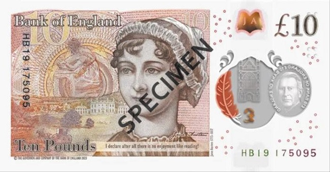 ▲ 영국을 대표하는 여성 소설가 제인 오스틴의 얼굴이 그의 사망 200주년인 2017년부터 발행하는 영국 10파운드 지폐에 그려져 있어요. /잉글랜드 은행
