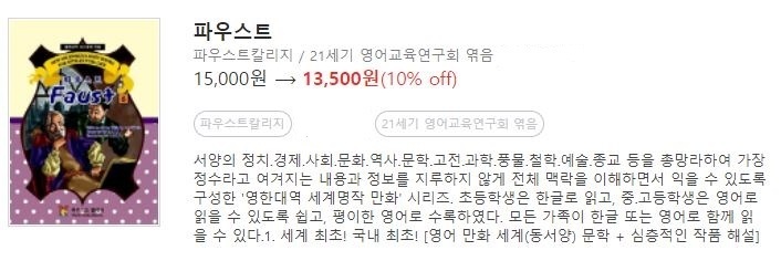 3. 영한대역 세계 명작 칼라 만화 : 총 20권(각권 정가 15,000원)