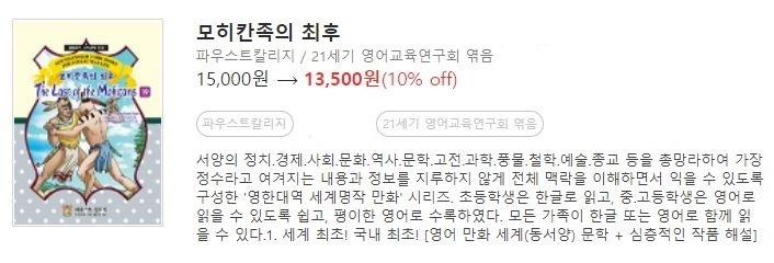3. 영한대역 세계 명작 칼라 만화 : 총 20권(각권 정가 15,000원)