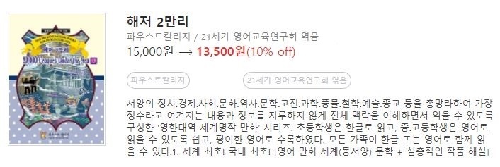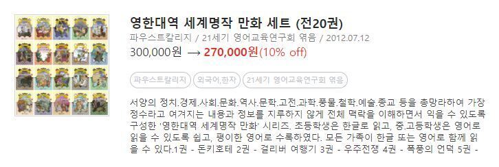 3. 영한대역 세계 명작 칼라 만화 : 총 20권(각권 정가 15,000원)