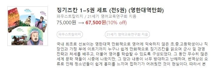 4. 영한대역 칼라 만화 징기즈칸((Genghis Khan) : 5권(각권 정가 15,000원)
