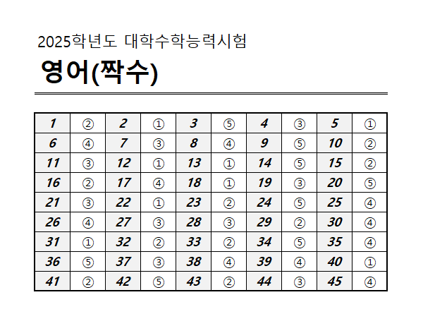2025 대학수학능력시험 영어 홀수형 / 짝수형