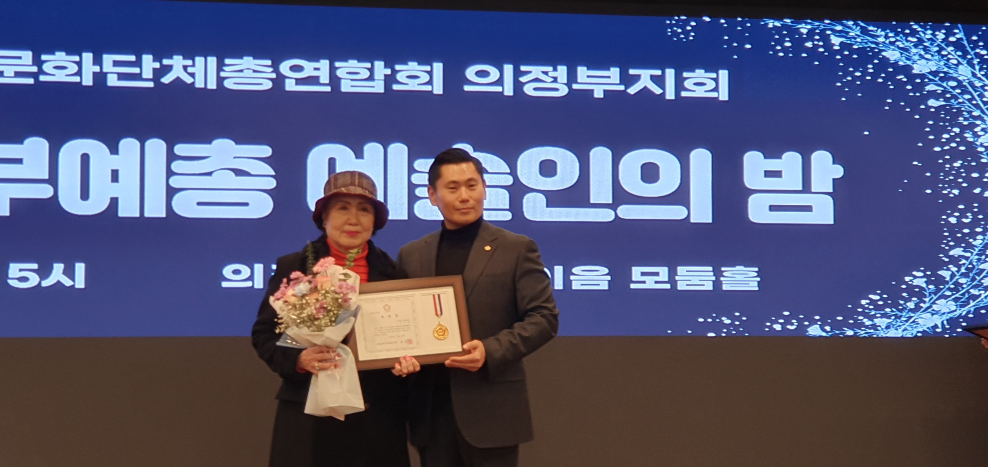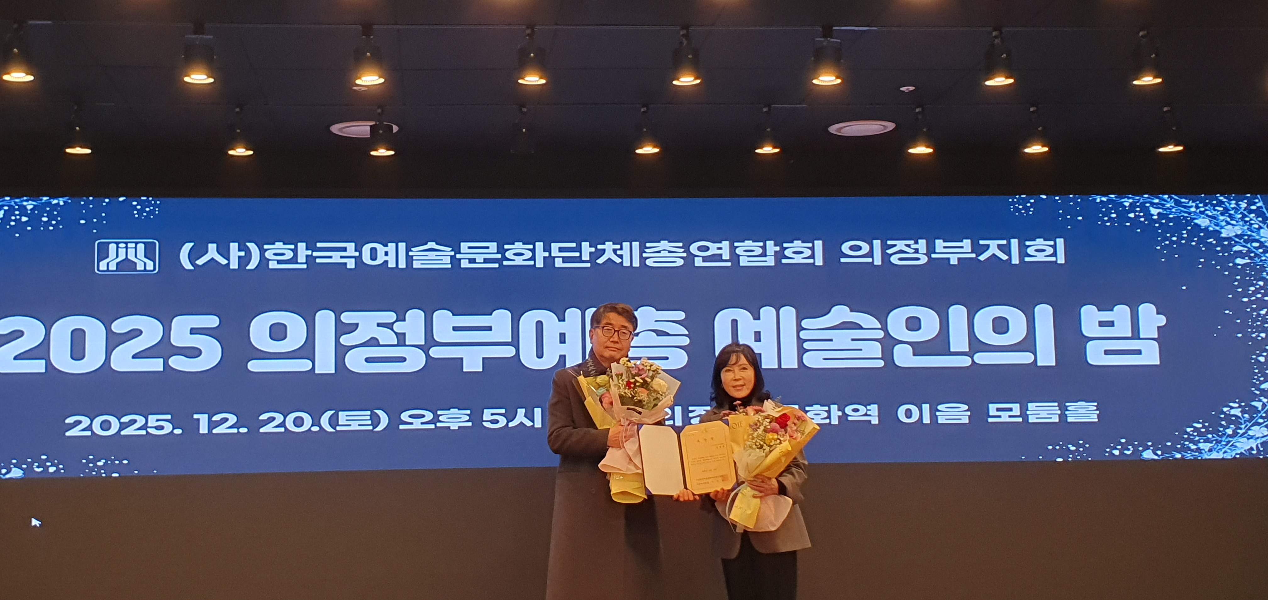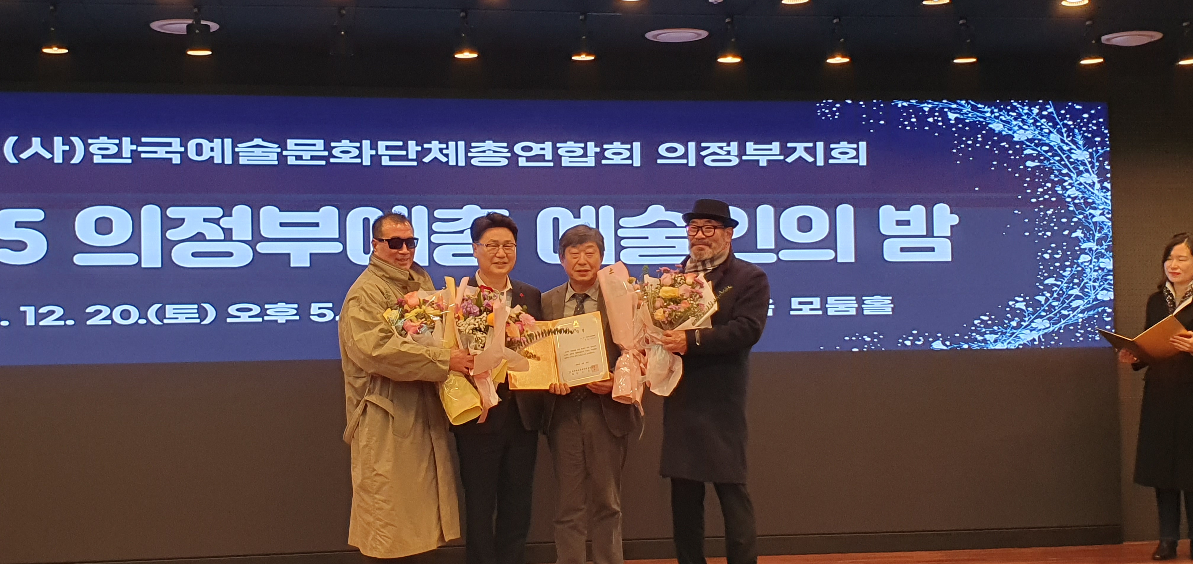 김원기선생님께서 한국예총회장상, 이지향선생님께서 시의회의장상, 김선용, 허은주선생님께서 의정부예총회장상을 수상하였습니다. 수상을 진심으로 축하드립니다.