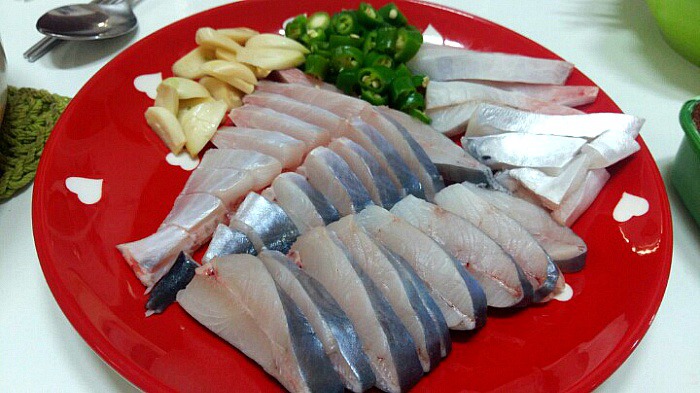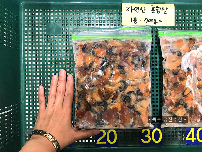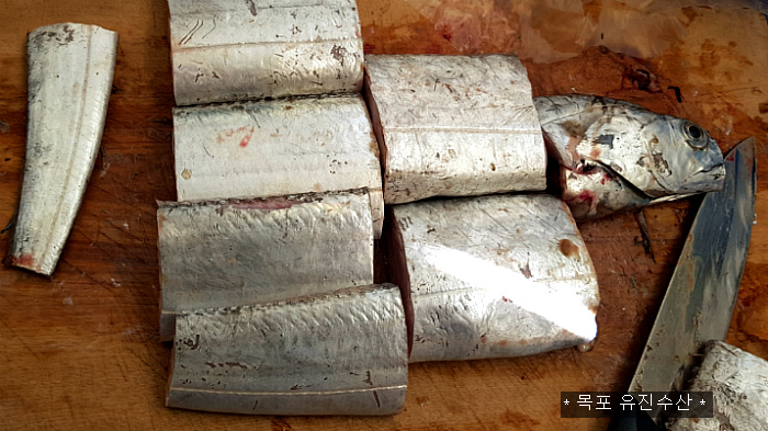 ↓한마리 1.1k 짜리 토막낸 모습 |