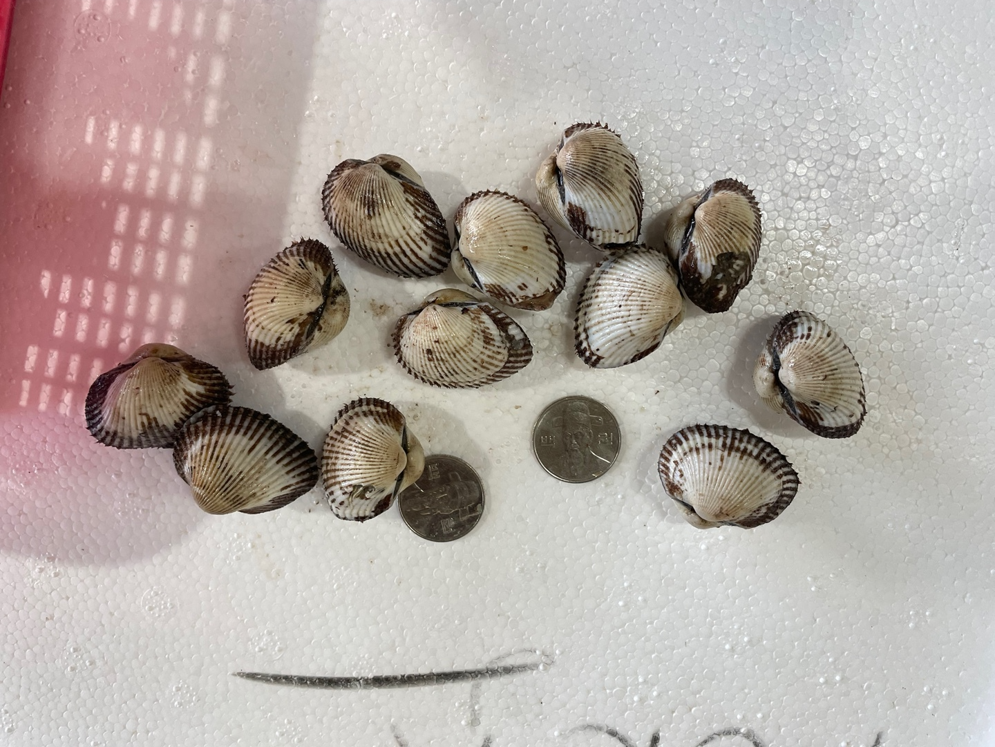 같은뻘바탕에서 작업을 하여도 물때 일정에 따라 크기도 달라진답니다.