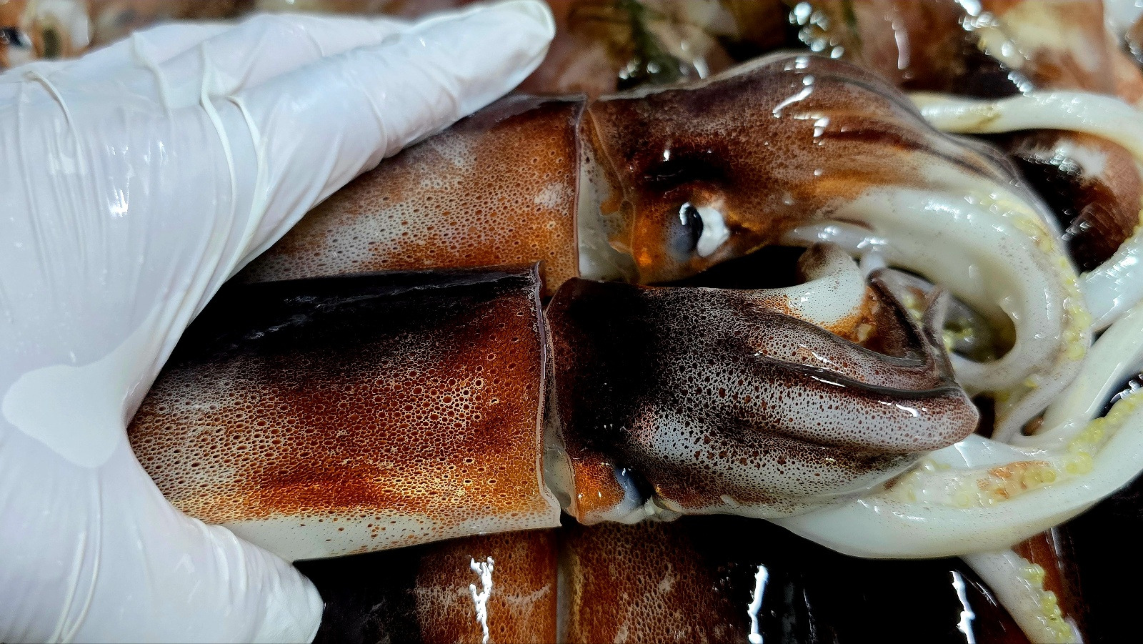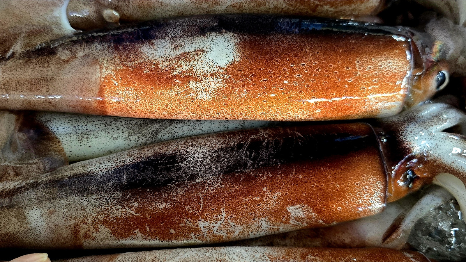 오징어는 서로 닿거나 얼음에 닿아도 색이 빠진답니다.