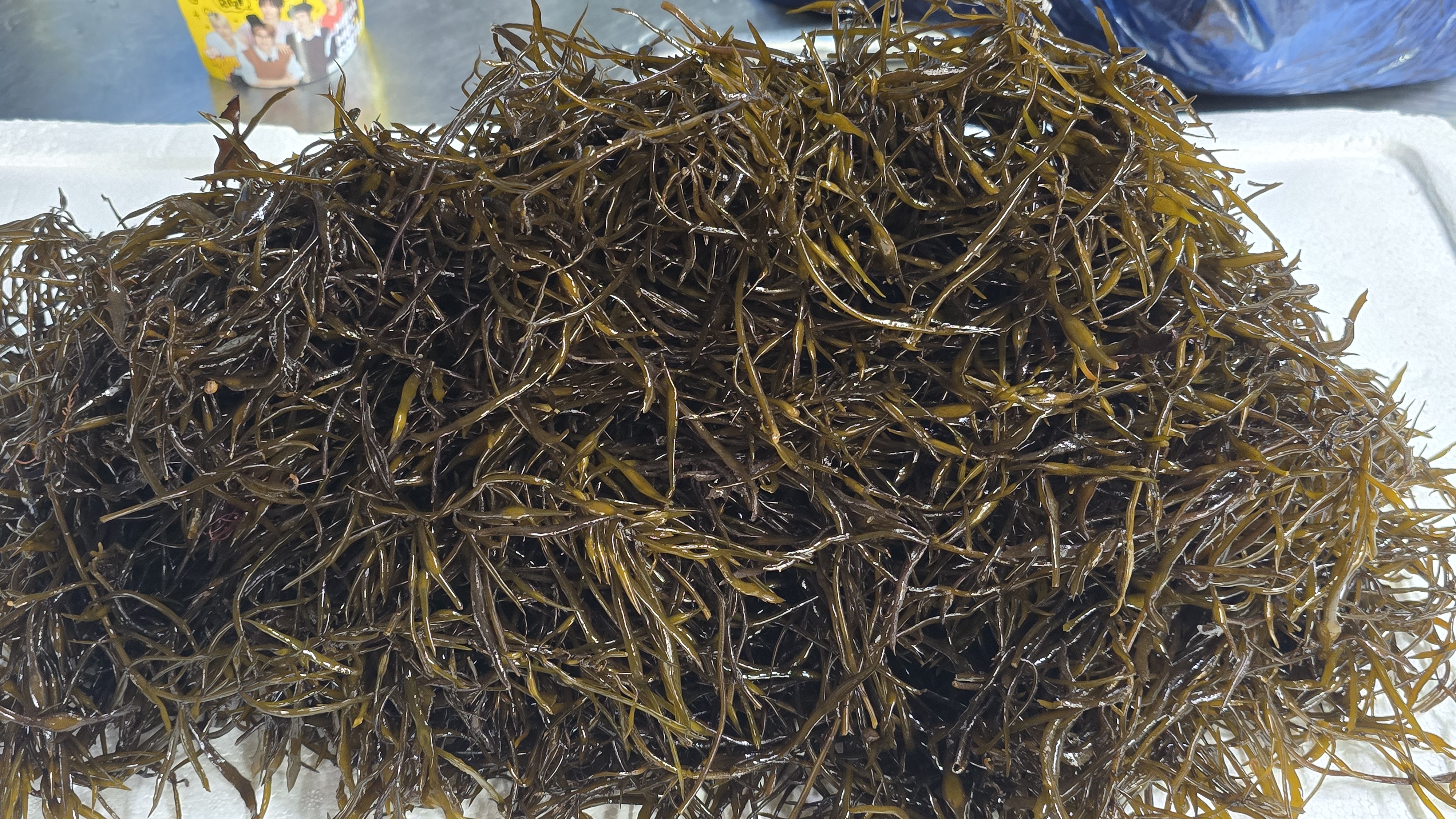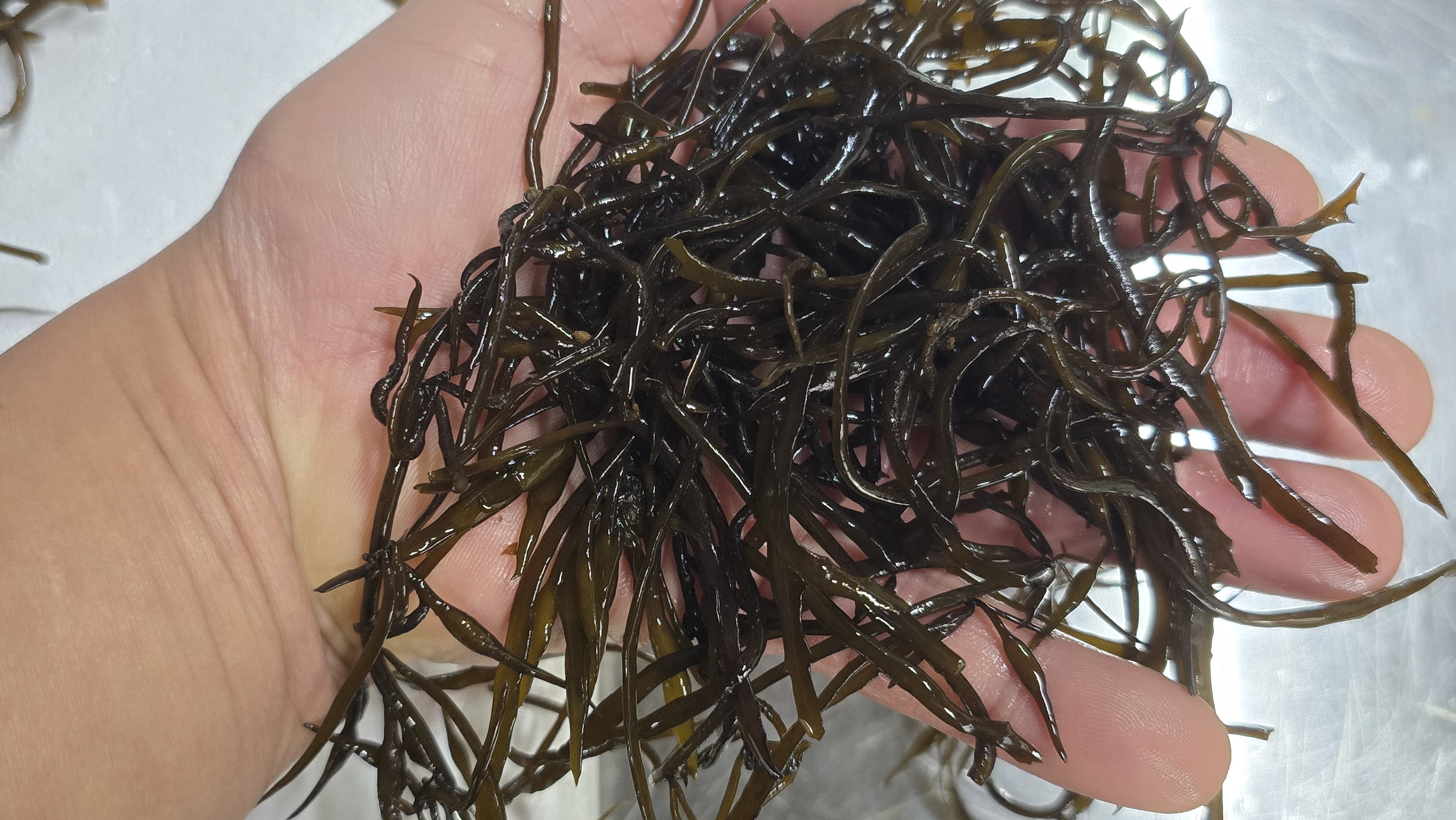 감태는 물때에 따라 색이 변하고 촉감도 다릅니다.