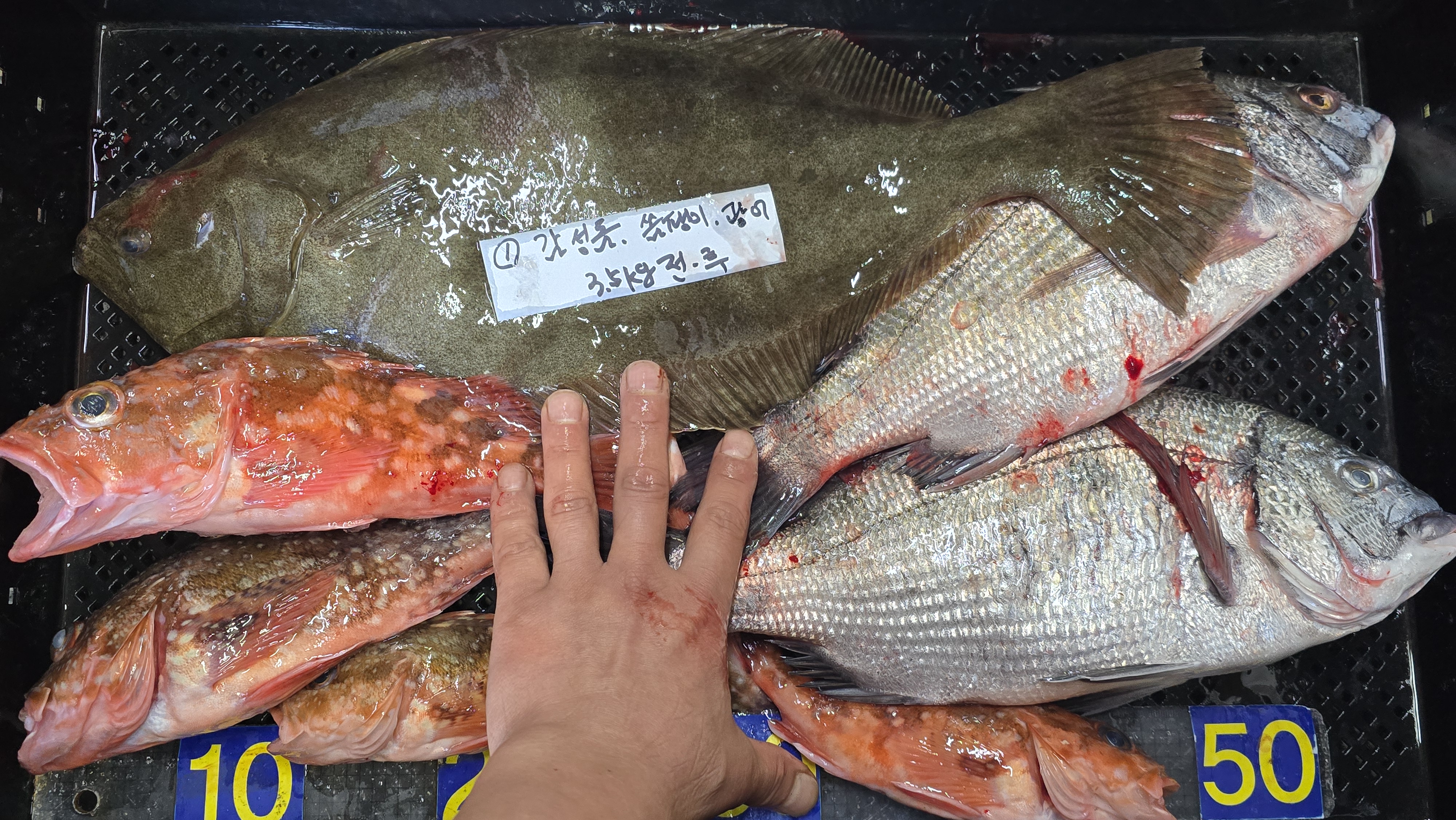오늘도 싱싱한 활어 횟감 입찰 받아왔어요